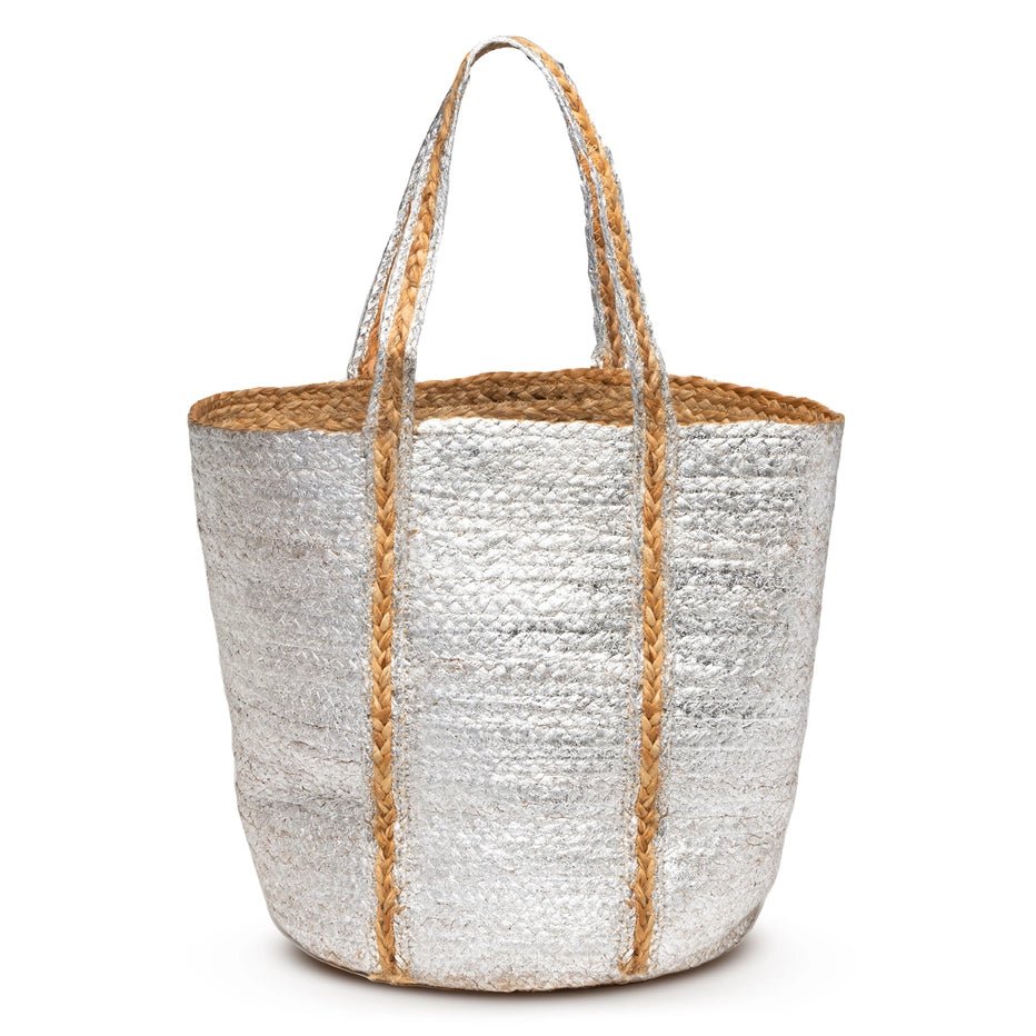 Silver Foil Jute Tote Bag is backordered and will ship as soon as it is back in stock.