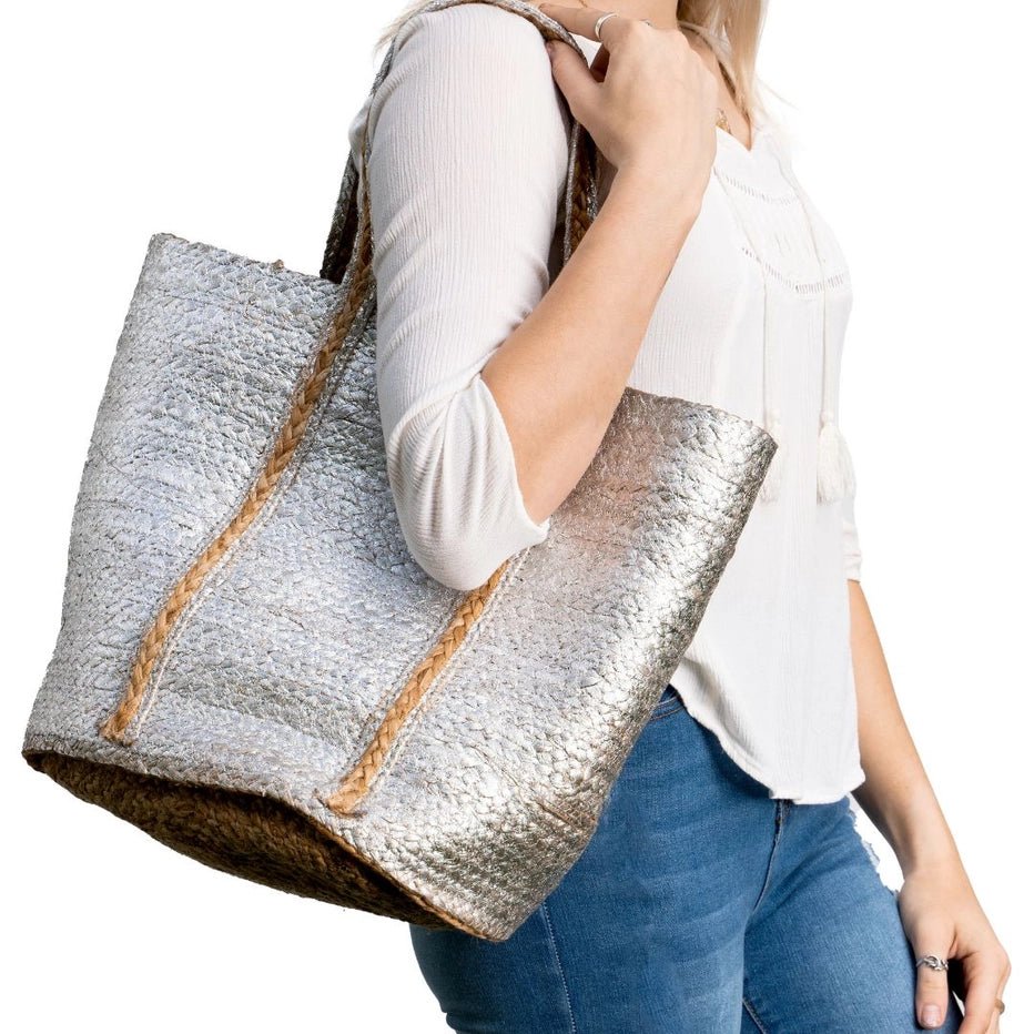 This large tote has a glamorous beach vibe that will carry everything from towels to your sunscreen.