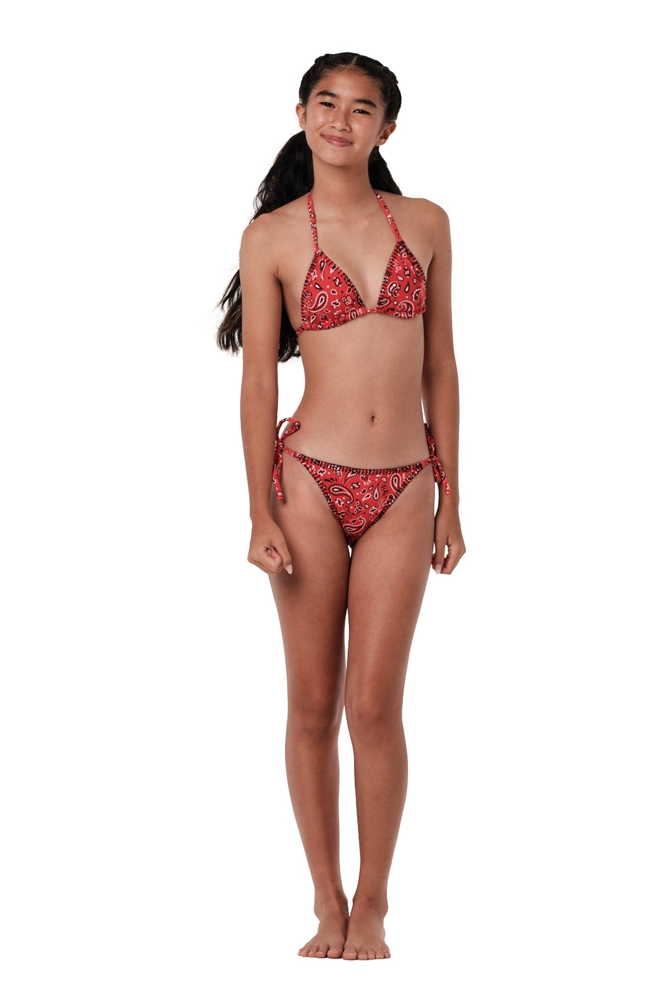 The String is a full-coverage, sophisticated two-piece that features elegant crochet detailing, making it a must-have this season. Whether your girl is headed to the beach or the pool, this bikini is both salt and chlorine resistant. The exclusive print fabric not only adds a unique charm but also protects the skin from the sun's harmful rays, as the UBF 50+ blocks out more than 97% of the UV radiation.