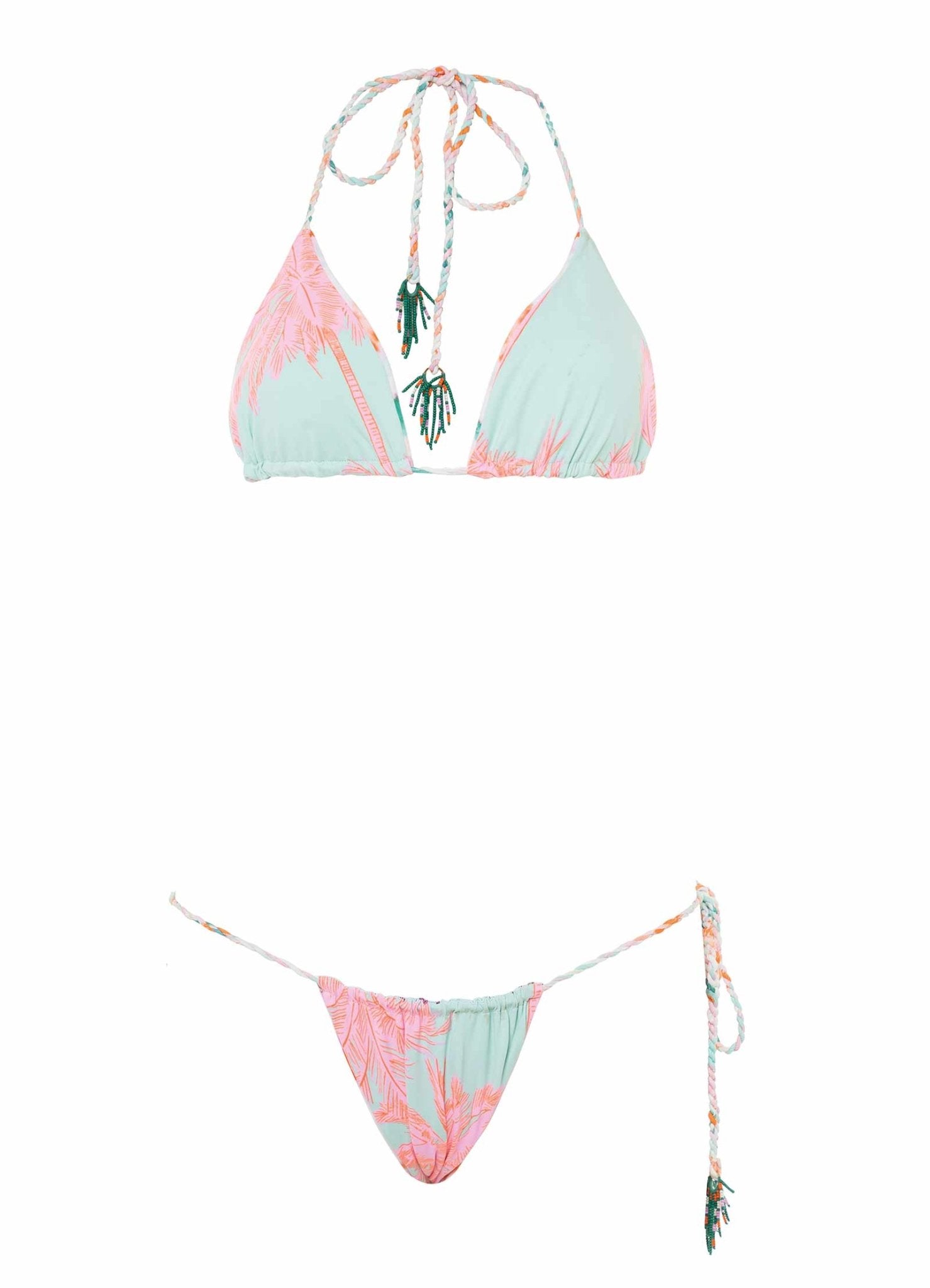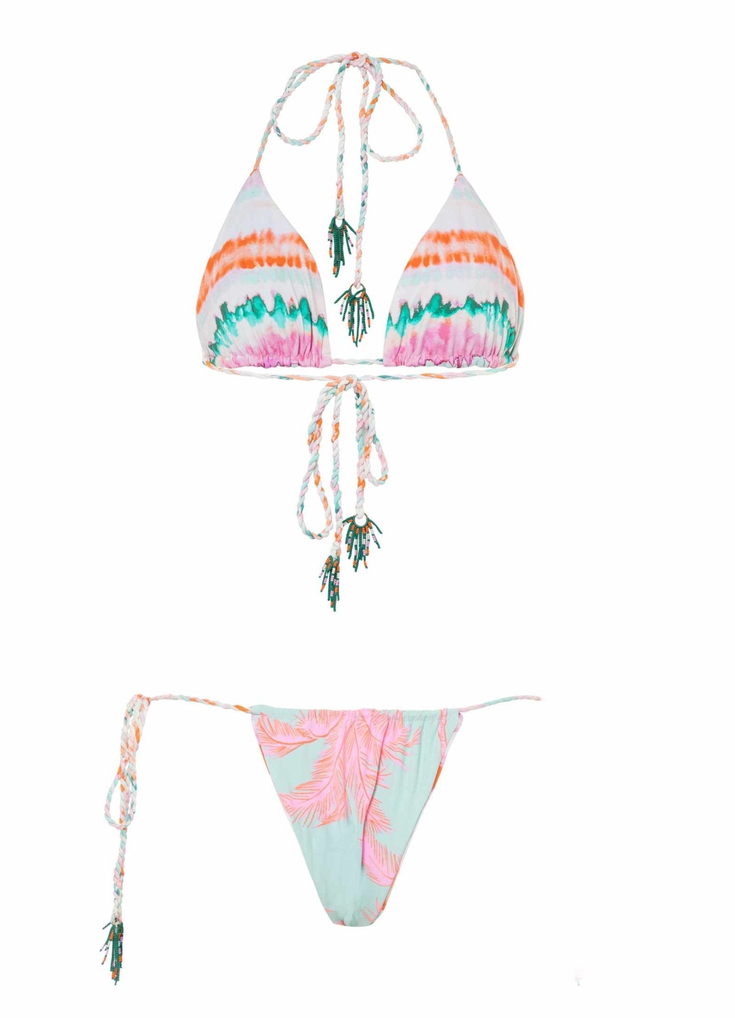 Balmy, where have you been all our lives? This perfect sliding triangle bikini top is ideal for summer vacations. With an incredible colorful look, reversible print, and lightweight fabric, the Rainbow Dye Balmy will set you apart in the cabana or on the beach.