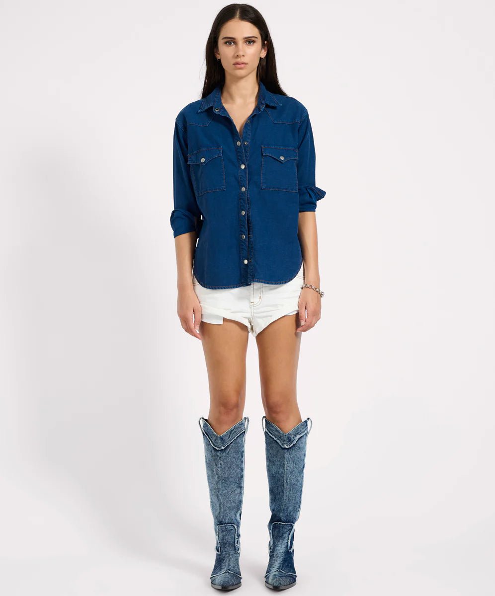 The LOW WAIST BANDITS Denim Shorts are the iconic staple of One Teaspoon's collection. These cult classic denim shorts feature a relaxed fit with a low-rise waist, designed to sit comfortably on the hips. The large patch pockets add a practical touch, while the signature twisted and rolled hem gives them a distinctive bandit-inspired look.