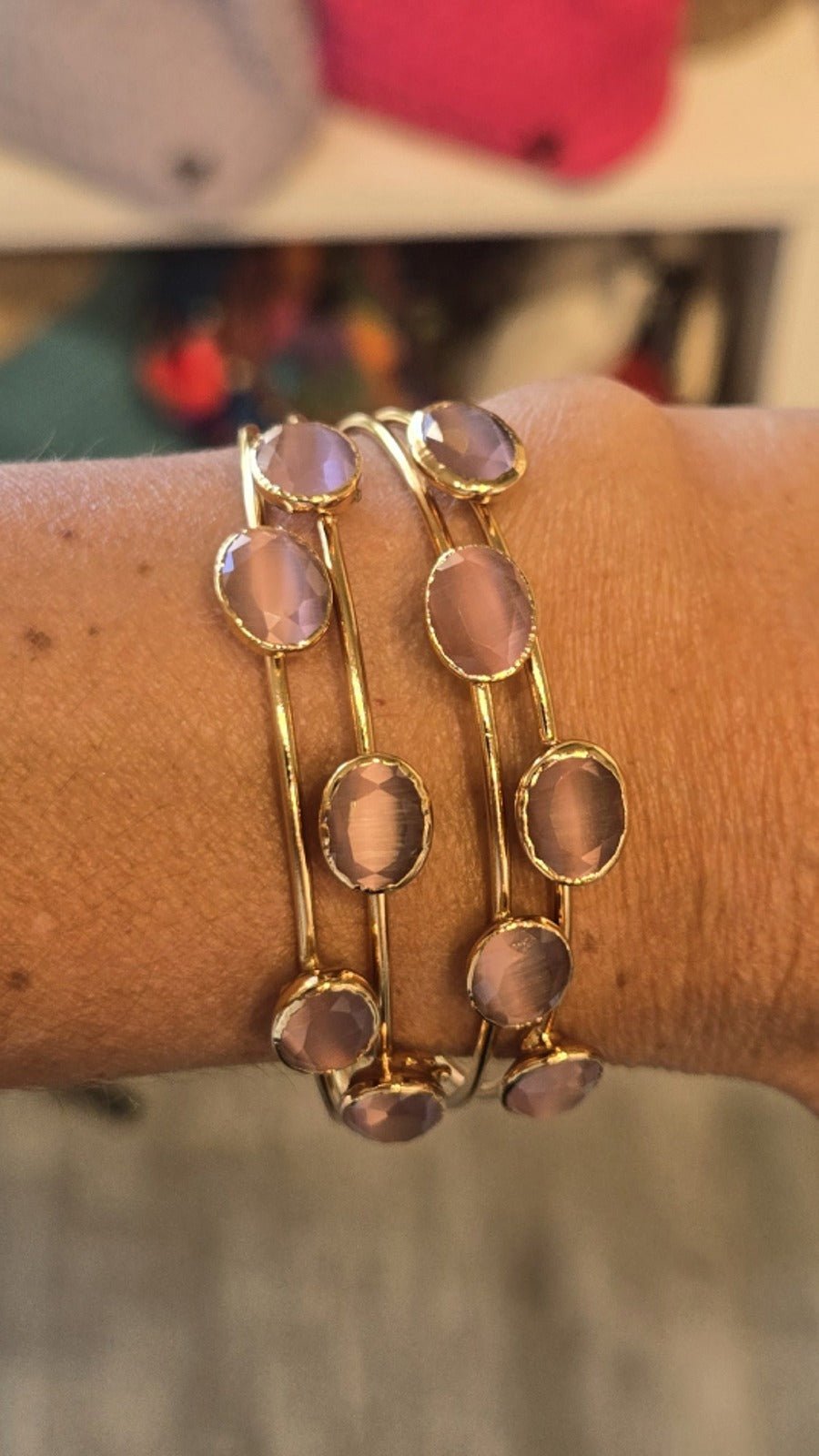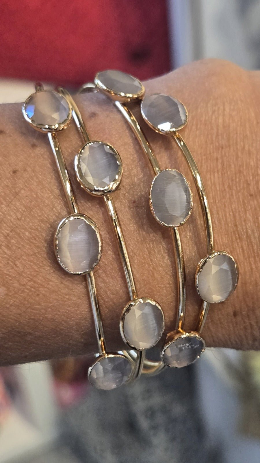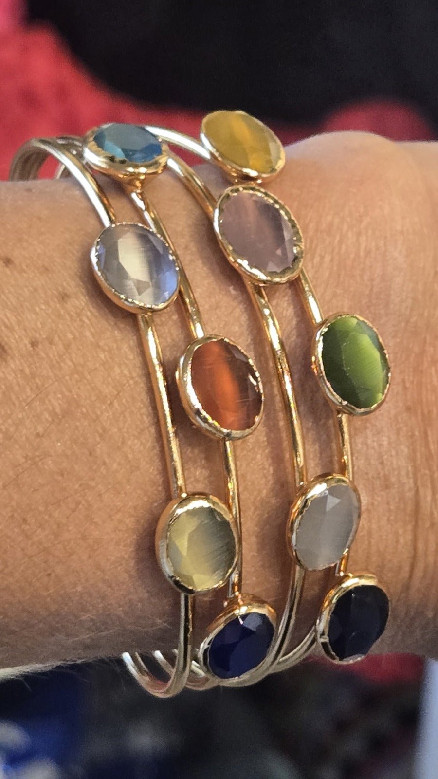 Elevate your wrist with the Eve Foxx 10 Stone Cat Eye Gold Bracelets, a sophisticated accessory that seamlessly blends timeless elegance with contemporary flair. Each bracelet features ten striking cat eye stones set in lustrous gold, creating a captivating play of light and dimension. Available in multiple colors, you can curate a collection that reflects your personal style or select the perfect shade to complement any occasion. The refined craftsmanship and luxurious materials make this bracelet an ideal choice for those who appreciate quality jewelry that makes a subtle yet undeniable statement.