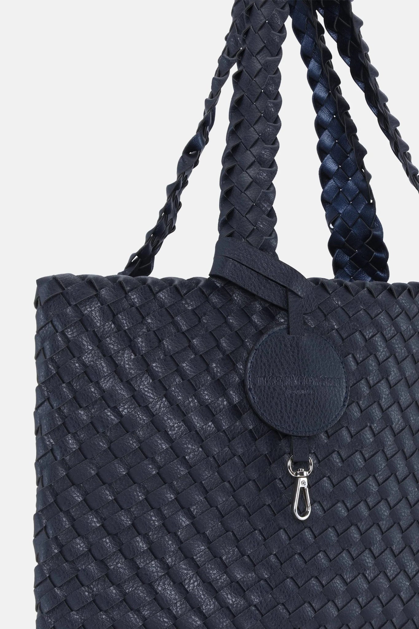 A modern take on everyday elegance, our braided Tote Bag is designed to bring effortless style and function to your daily routine. Crafted from soft braided faux leather with a subtle, polished shine, this reversible tote bag features two complementary solid colours — one on the outside, another on the inside — offering a versatile, two-in-one design. Perfect as a reversible shopper or day bag, it includes a matching ILSE JACOBSEN HORNBÆK logo tag with a hidden snap hook to secure your essentials.