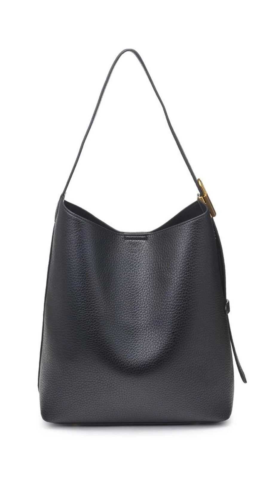 This sophisticated hobo bag combines stylish design with everyday functionality. Featuring a textured surface and sleek shape, it suits both professional settings and casual outings. Inside, a convenient pouch keeps your belongings organized, while the comfortable strap ensures it rests elegantly on your shoulder. Transition effortlessly from daytime activities to evening events with this adaptable accessory. Crafted from vegan leather, it offers a responsible choice that enhances your wardrobe with timeless appeal.