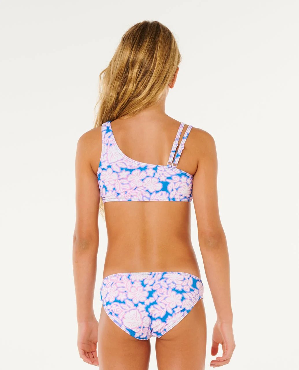 Dive into summer style with the Rip Curl Girls Sunshine Squad Bikini Set in vibrant Electric Blue. Crafted from polyester elastane blend, this two-piece swimsuit delivers a performance fit designed to keep up with active beach days and water adventures. The bold electric blue hue brings energy and fun to any poolside or seaside outing. Perfect for young swimmers who want quality construction and eye-catching color in one stylish package.