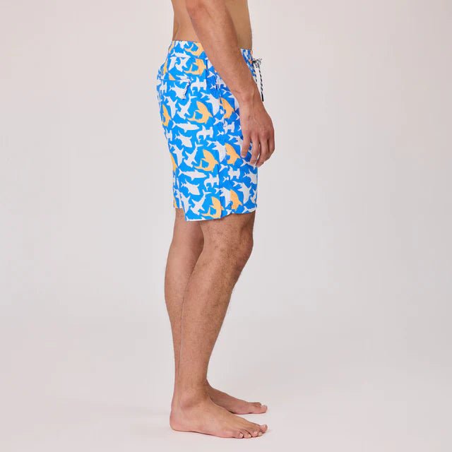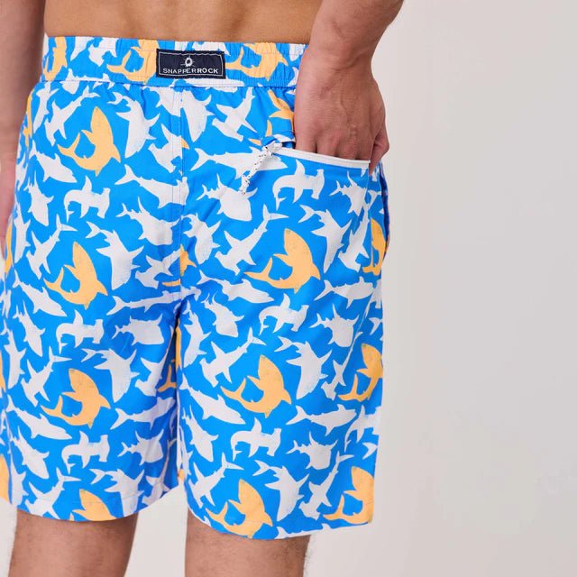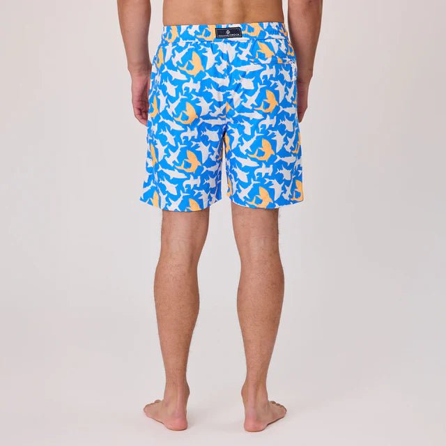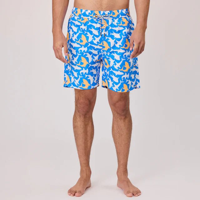 Lead the shiver in our boldest swim short yet. The Shark Squad print brings serious energy with striking shark silhouettes in electric blue and neon Papaya made for dads who own their matching moment.