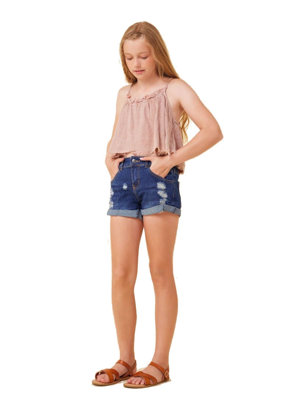 Vintage Havana Kids Dark Denim Stretchy Cuffed Shorts